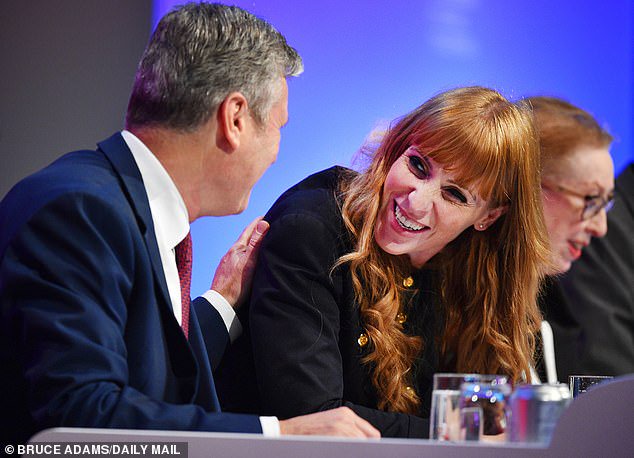 Party leader Sir Keir Starmer and deputy leader Angela Rayner speak to each other during opening remarksIts the first chance since the pandemic for MPs and party members to get together in person.